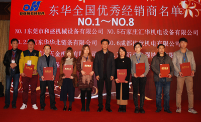 會議期間,宣董事長向東華16名2015年度“優(yōu)秀經(jīng)銷商”和盾牌6名“優(yōu)秀經(jīng)銷商”頒發(fā)了榮譽證書,并合影留戀。