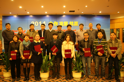 最后,內銷公司總經理戴迪漢和錢文孝宣讀了優秀經銷商名單。宣董事長向優秀經銷商頒發了榮譽證書并合影留戀。