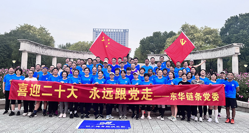 早晨六點,東華鏈條黨委聯合東華健身跑俱樂部組織黨員及會員開展“喜迎二十大,永遠跟黨走”健身跑活動,80多名員工以健身跑的方式喜迎黨的二十大勝利召開。