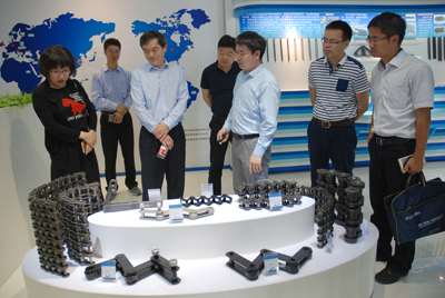 首先,袁總等領導陪同工作組參觀了東華新區、北區生產基地及公司展廳,向各級領導介紹了鏈條與人類發展的淵源及世界鏈條發展史、中國鏈條發展史和東華鏈條發展史。各級領導參觀中,對公司精良的制造裝備、先進的生產工藝、可靠的質量保證能力及豐富齊全的產品紛紛給予好評。許司長說,通過參觀改變了我們對鏈條的認識,發現鏈條要求其實很高,制造精度高,應用領域廣泛,品種非常豐富。