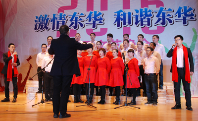 晚會(huì)主題為《激情東華,和諧東華》,這是一臺(tái)完全由員工自編自導(dǎo)自演的自?shī)首詷?lè)性質(zhì)的晚會(huì),節(jié)目豐富多彩,有獨(dú)唱、大合唱、舞蹈、相聲、小品、詩(shī)朗誦、戲劇表演等共23個(gè)節(jié)目,中間穿插了觀眾抽獎(jiǎng)等環(huán)節(jié)。