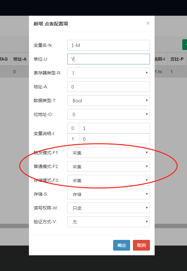 2. 點(diǎn)表中采集模式是否設(shè)置都為“不采集”,采集模式選擇應(yīng)是“采集。